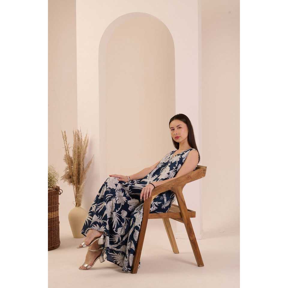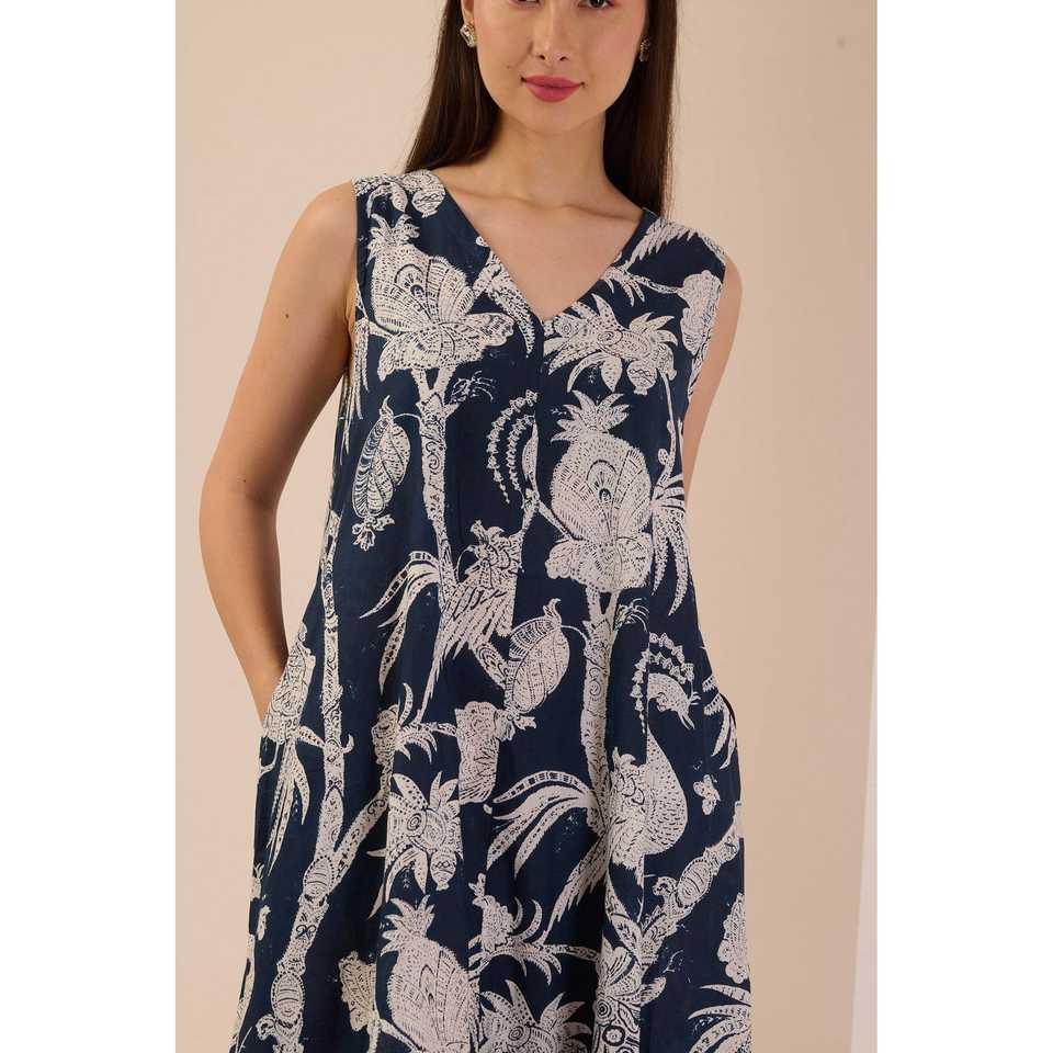 ชุดเดรสปาร์ตี้สีฟ้า Peacock Garden ทรงเอไลน์ คอวี เอวธรรมชาติ ผ้าคุณภาพสูง ระบายอากาศได้ดี ไซส์ XS-XXL เหมาะสำหรับโอกาสฤดูใบไม้ผลิ