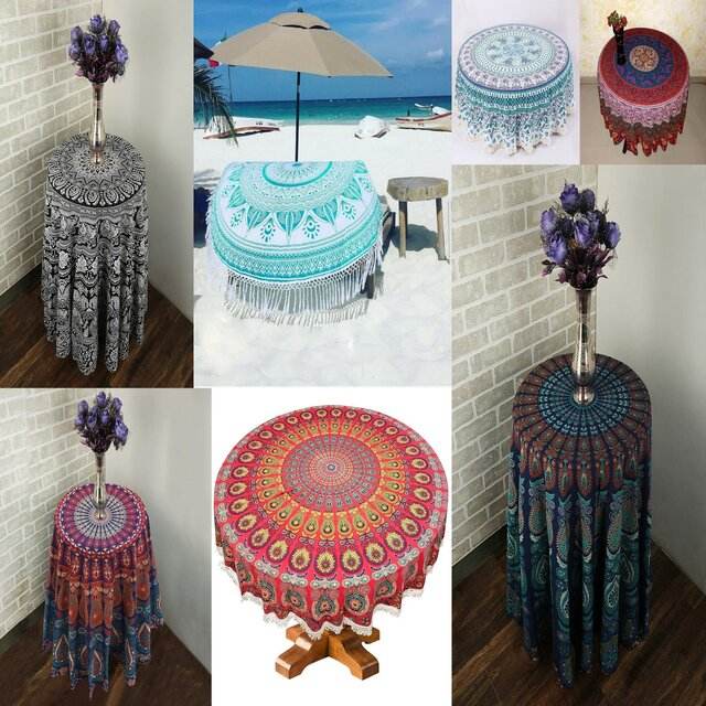 Peacock Mandala Round Roundie Soft Cotton Picnic Mat Wall Hanging Table Cover Beach Towel for Home Decor By Indian Consigners