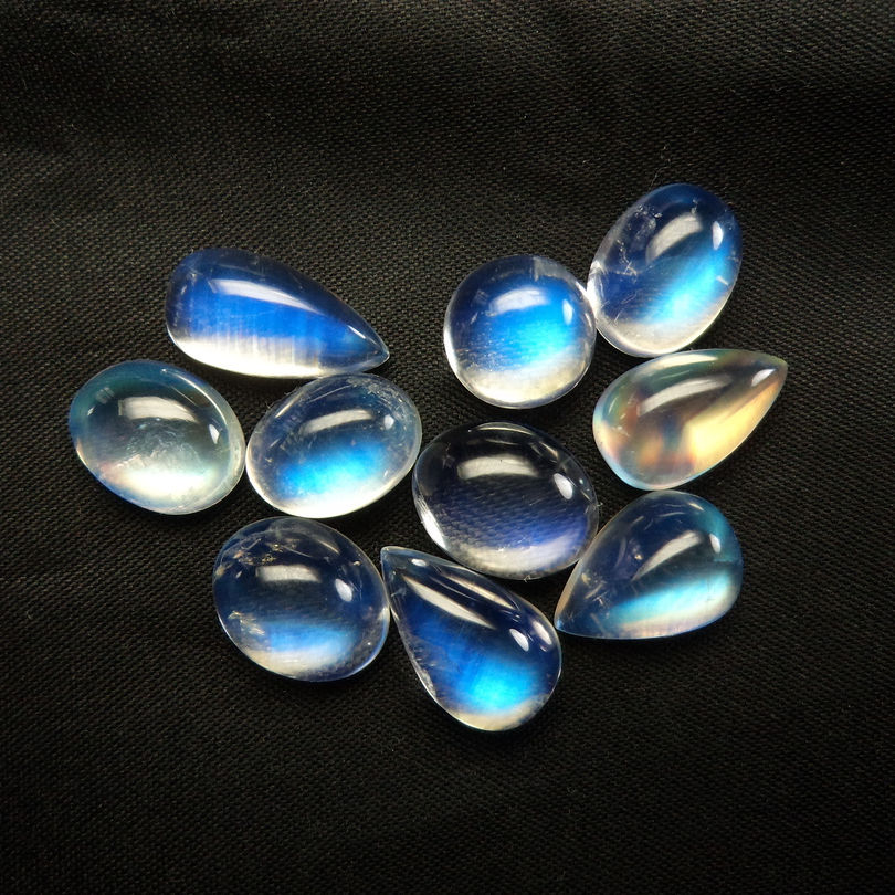 พลอยมูนสโตนจากมาดากัสการ์ทรงลูกแพร์และวงรีสีรุ้งธรรมชาติแบบเรียบ