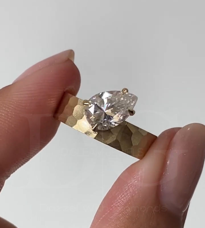 ลูกแพร์ตัด1.00 CT Moissanite แหวนหมั้น, แหวนแต่งงานโซลิแทร์, แหวนแต่งงาน, วงแหวนแต่งงาน, เครื่องประดับชั้นดี