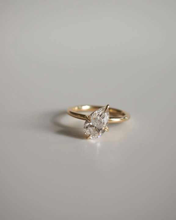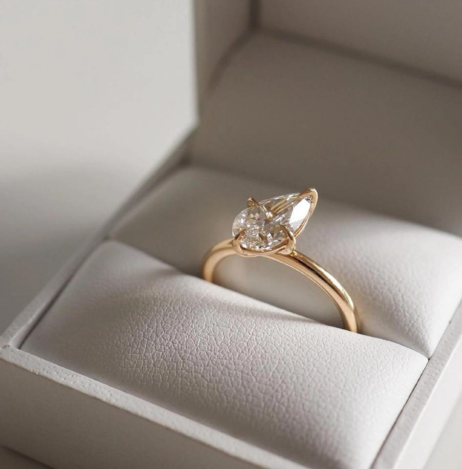 แหวนเพชรเม็ดเดี่ยวทรงลูกแพร์ 2 กะรัต เพชรสร้างในห้องปฏิบัติการ ตัวเรือนทองคำขาว 14K ประดับเพชรแบบเข็มกลัด ดีไซน์หรูหรา เหมาะสำหรับแหวนหมั้นและแหวนแต่งงาน