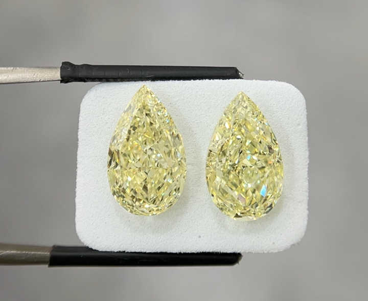 เพชรทรงลูกแพร์ 5.02 กะรัต สีแฟนซี Y-Z ระดับ VS1 คุณภาพสูง ผ่านการรับรอง ขัดเงา EX ระดับ VG เพชรเม็ดเดี่ยว