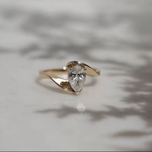 แหวนทอง 14k ประดับเพชรทรงลูกแพร์ ดีไซน์บิดเกลียวไม่ซ้ำใคร