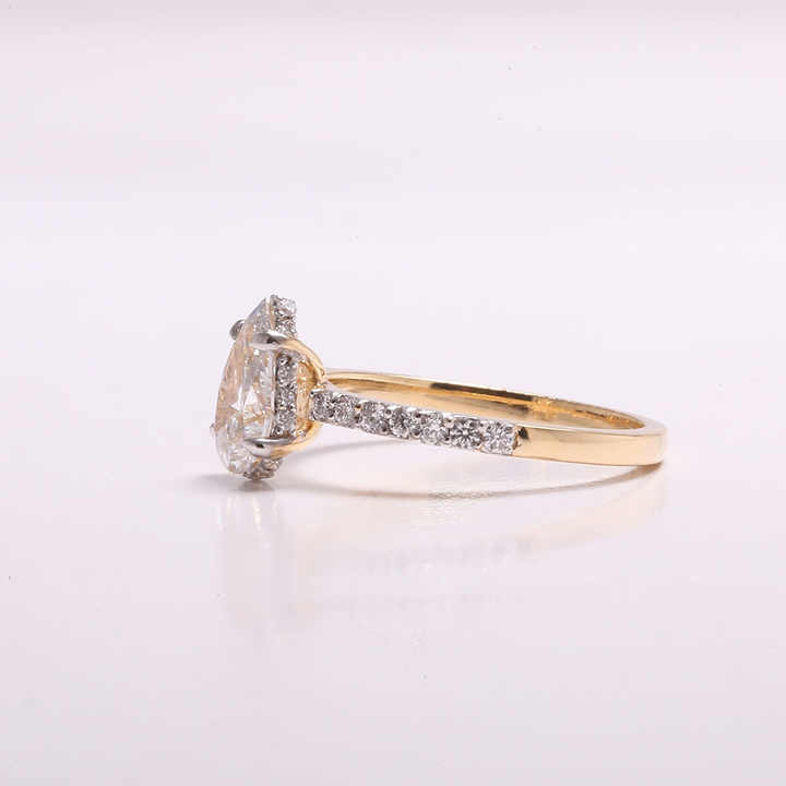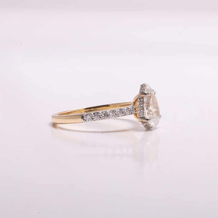แหวนเพชรทรงลูกแพร์แบบหนามเตยสำหรับผู้หญิง ดีไซน์ดอกทานตะวันประดับเพชรเม็ดใหญ่ระยิบระยับ แหวนเพชรแล็บโกรว์ ของขวัญวันครบรอบ