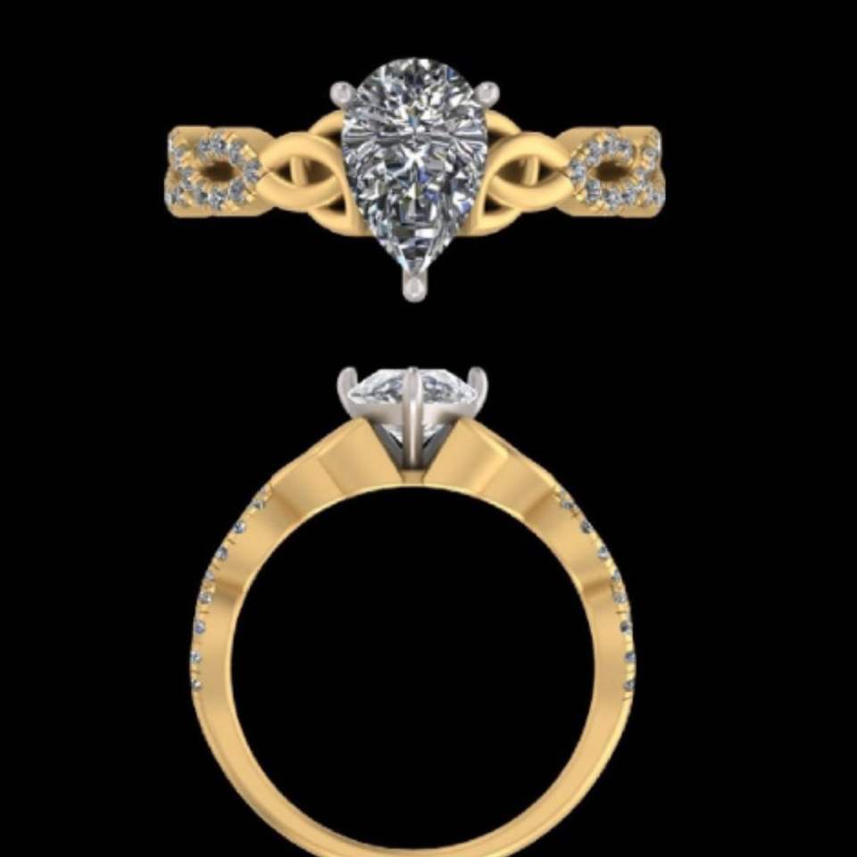 แหวนหมั้นเพชรทรงลูกแพร์แบบอินฟินิตี้ทวิสต์ ทองคำแท้สีเหลือง ประดับด้วยลายเซลติกน็อต งานแฮนด์เมด ฝังเพชรแบบพาเว่ สำหรับเจ้าสาว เครื่องประดับชั้นดี