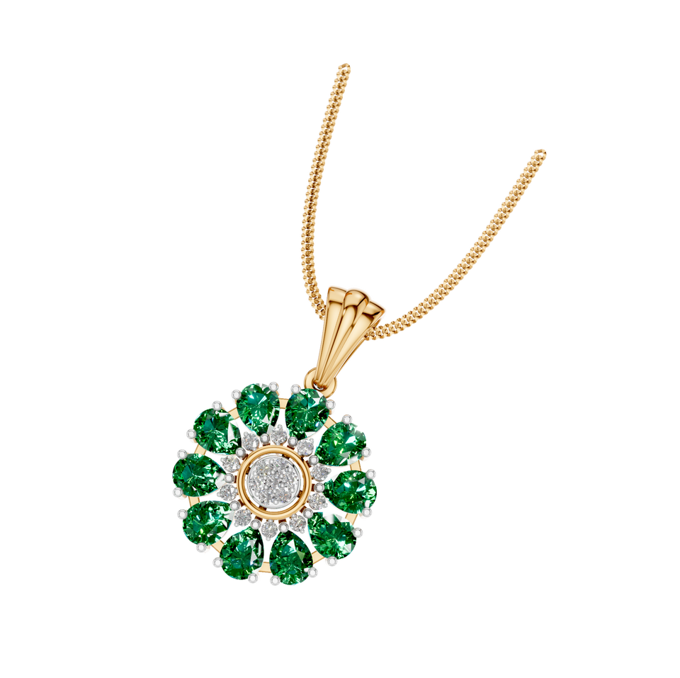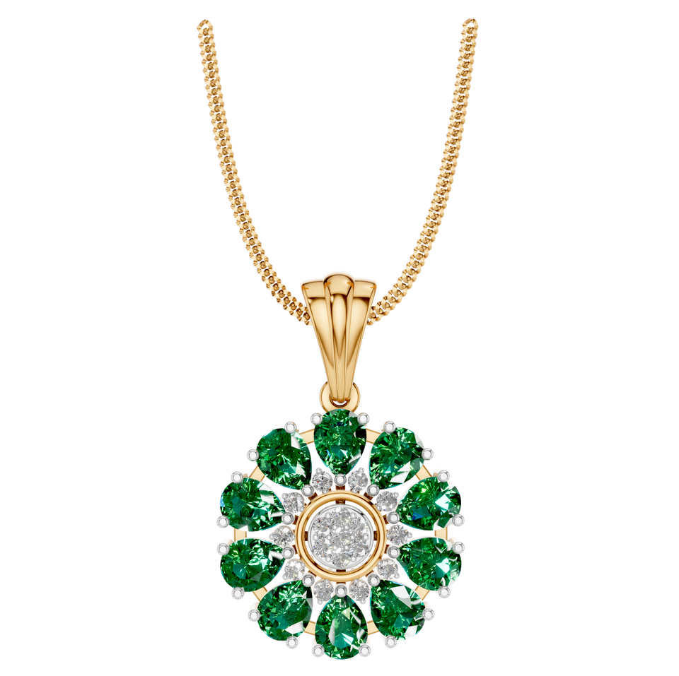 Style:Floral Pendant with Pear-Shaped Emeralds & Natural Diamonds