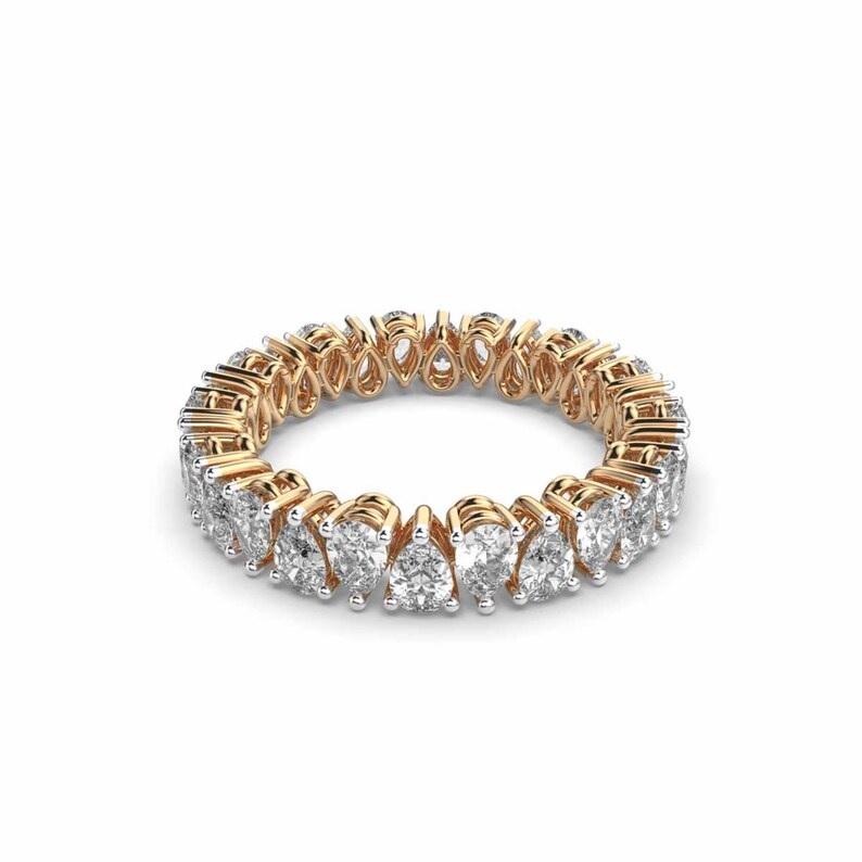 วงแหวนเพชรแบบเรียงซ้อนได้สำหรับปลูกในห้องแล็บแบบเต็มวงที่ทำจากเพชรสีขาวทอง14K