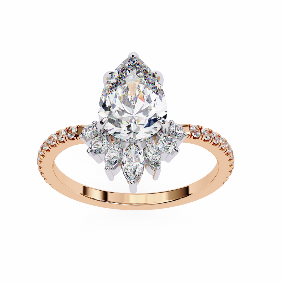 แหวนเพชรสำหรับปลูกในห้องปฏิบัติการลูกแพร์14K สีทอง IGI ได้รับการรับรอง VVS VS D เครื่องประดับสีขาวโรสเหลืองทองสำหรับผู้หญิงเป็นของขวัญ