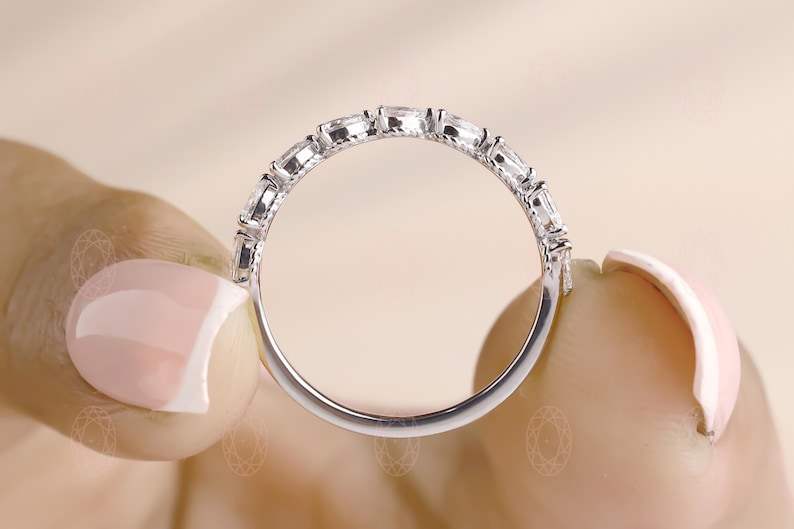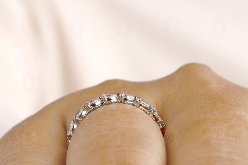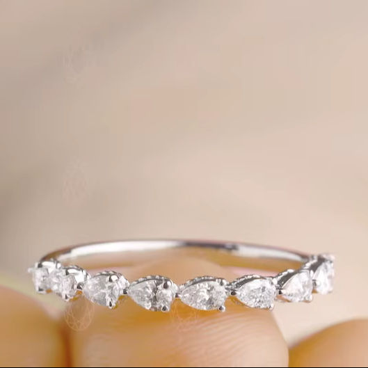 แหวนเพชรทรงลูกแพร์เพาะเลี้ยงในห้องปฏิบัติการแบบครึ่งวงนิรันดร์สำหรับผู้หญิง ทองคำขาว 10K ของขวัญขอแต่งงานสุดหรูสำหรับการหมั้น