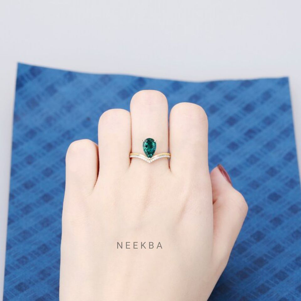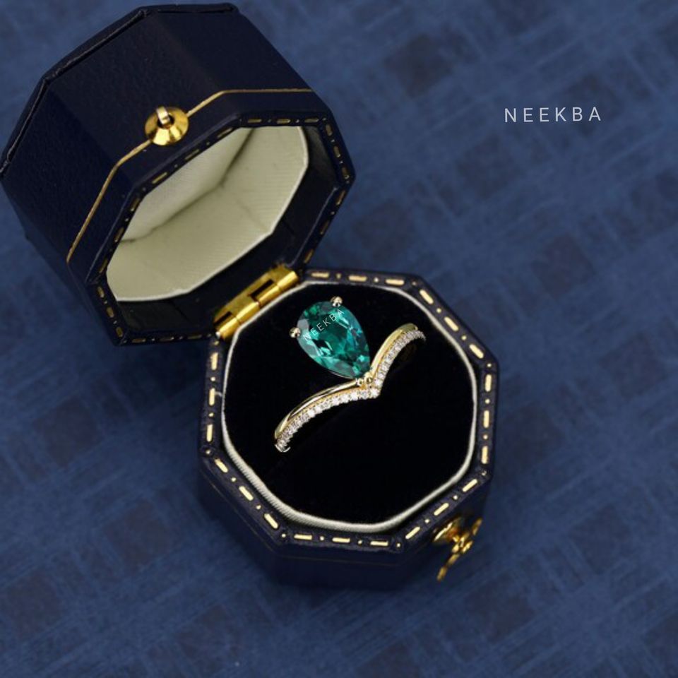 6*9มม. แหวนเงินสเตอลิงมรกต925ลูกแพร์รูปหยดน้ำแหวนหมั้นแบบโซลิแทร์จากอินเดีย