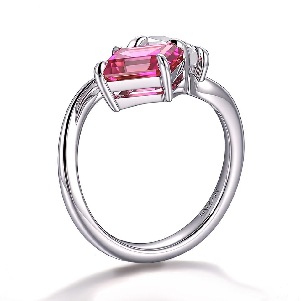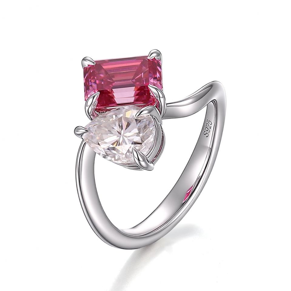 แหวนเพชรโมอิสซาไนต์ทรงลูกแพร์และพลอยสีชมพู ทองคำขาวแท้ 18K 14K 10K ประดับสองเม็ด ดีไซน์แฟชั่นสำหรับผู้หญิง