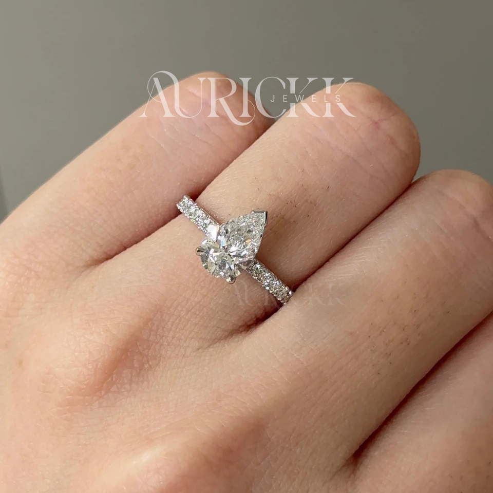 แหวนหมั้นเพชรโมอิสซาไนต์ทรงลูกแพร์ ประดับเพชรแบบไมโครเพฟ เงินสเตอร์ลิง สไตล์วินเทจ เครื่องประดับสำหรับงานปาร์ตี้สำหรับผู้หญิง
