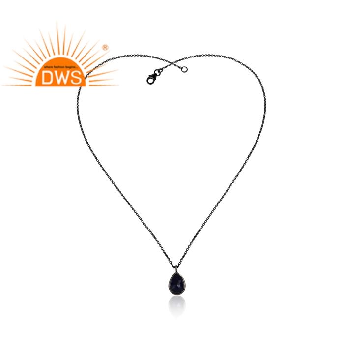 ลูกแพร์ตัดธรรมชาติสีฟ้าคอรันดัมจี้ด้วย925สร้อยคอเงินเครื่องประดับผู้ค้าส่งผู้ผลิตเครื่องประดับชุบโรเดียม