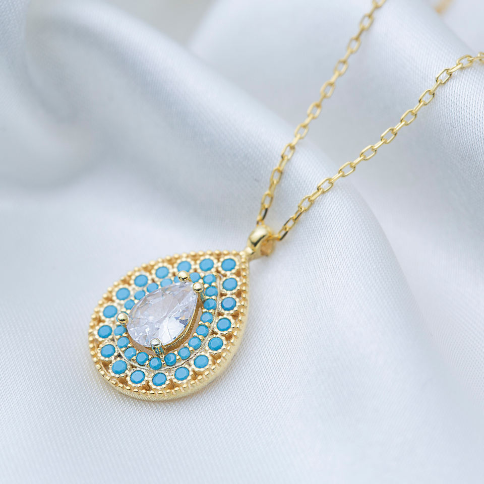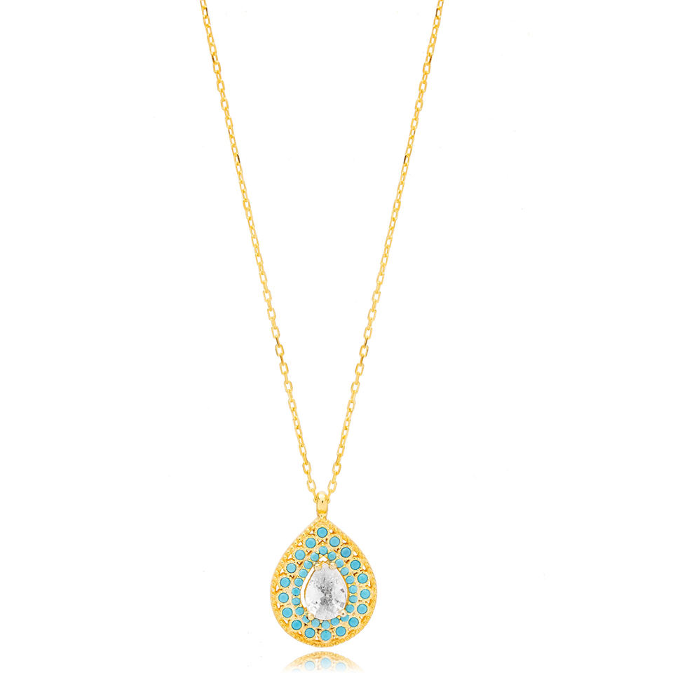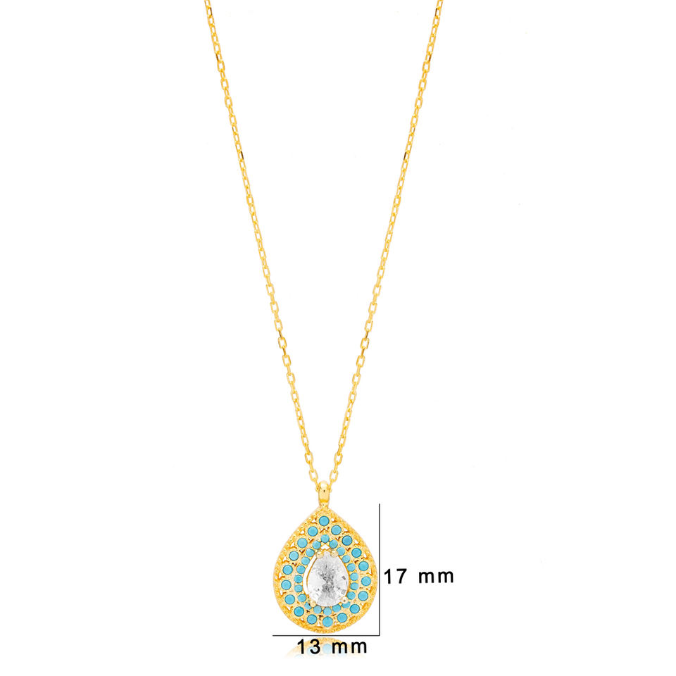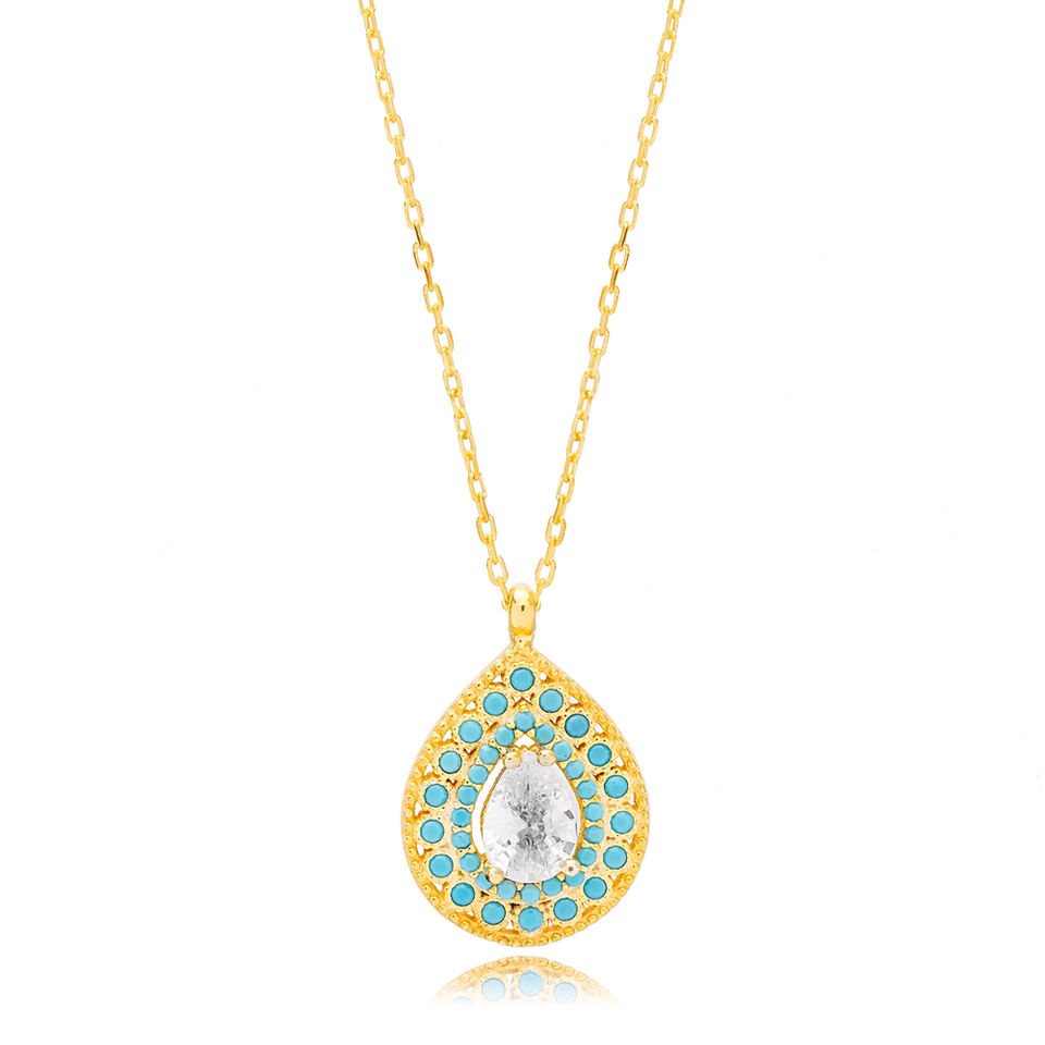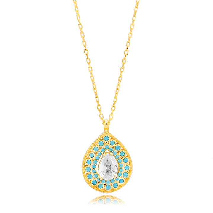 ลูกแพร์ตัดหินเพทายกับเทอร์ควอยซ์หินลูกแพร์สร้อยคอมีเสน่ห์แบบตุรกีขายส่งเครื่องประดับเงินสเตอร์ลิงสำหรับ925