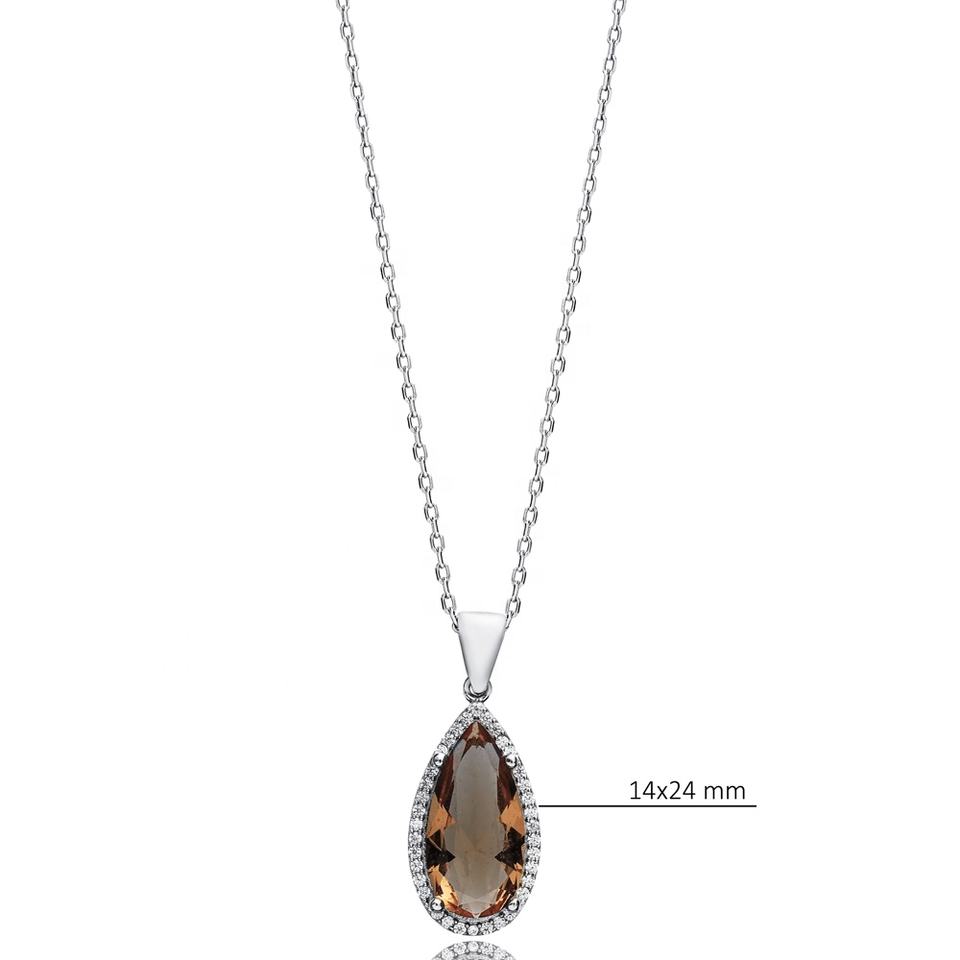 สร้อยคอหินซัลทานิท14X24มม. ดีไซน์ลูกแพร์925เงินสเตอร์ลิงเครื่องประดับทำด้วยมือสไตล์ตุรกีสำหรับขายส่ง