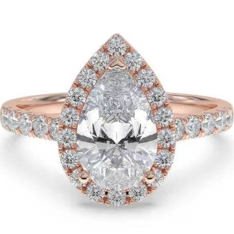 แหวนชุดไหล่เพชรทรงลูกแพร์แบบฮาโลเดี่ยว