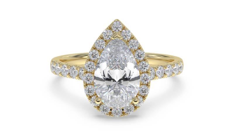 ออกแบบ: แหวนชุดไหล่เพชรทรงลูกแพร์แบบฮาโลเดี่ยว
