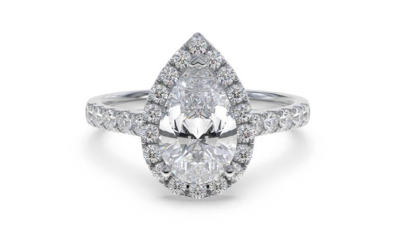 แหวนเพชรทรงลูกแพร์เม็ดเดี่ยวประดับรอบแบบ Halo น้ำหนัก 0.75 กะรัต เพชรเพาะเลี้ยงในทอง 18K และแพลตตินัม