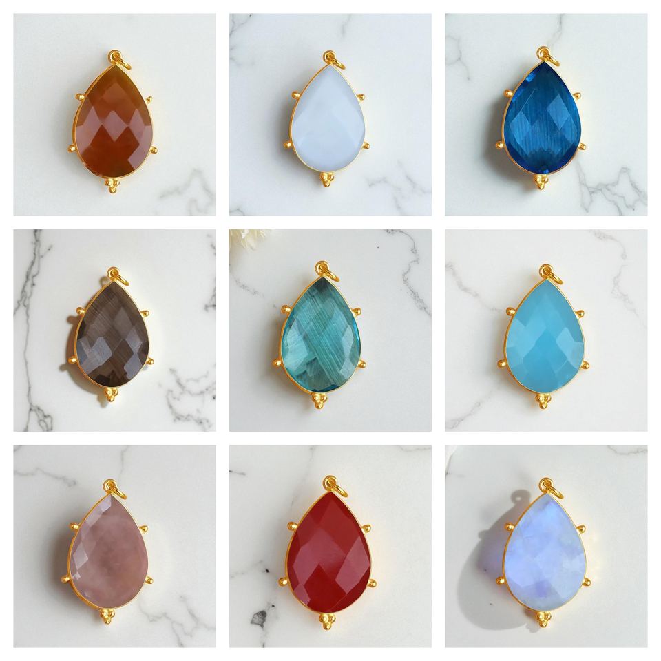 จี้พลอยคริสโซเพรสพลอยคาลซิโดนีเพชรพลอยเหลี่ยมลูกแพร์จี้แฟชั่นดีไซน์เนอร์จี้เงิน925สำหรับขายส่ง