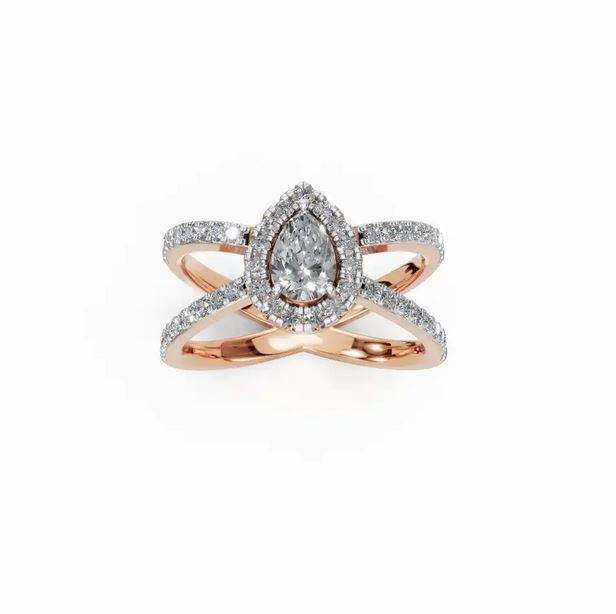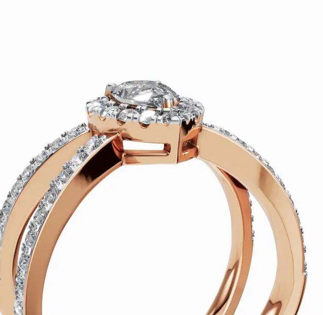 แหวนเพชรดีไซน์แบบวงแพร์ฮาโลแหวนทองแหวนแต่งงานแหวนของขวัญเพชรส่งออกจากอินเดีย
