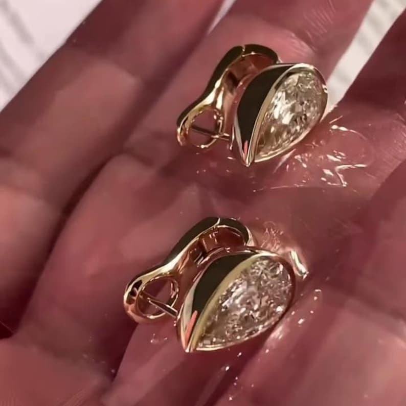 Pear Moissanite Diamond Stud Earrings Gold Plated with 925 Sterling Silver Fine Solitaire Jewelry Engagement for Womens Gift