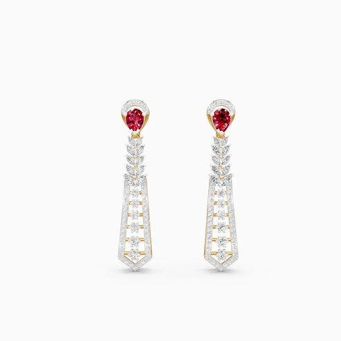 ต่างหูทรงหยดน้ำสไตล์เพียร์รูบี้ ประดับเพชร 2.23 กะรัต และพลอย 1.65 กะรัต | ในโทนสีทอง 9K สีเหลือง สีขาว และสีโรสโกลด์