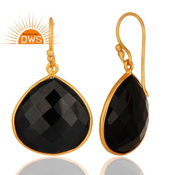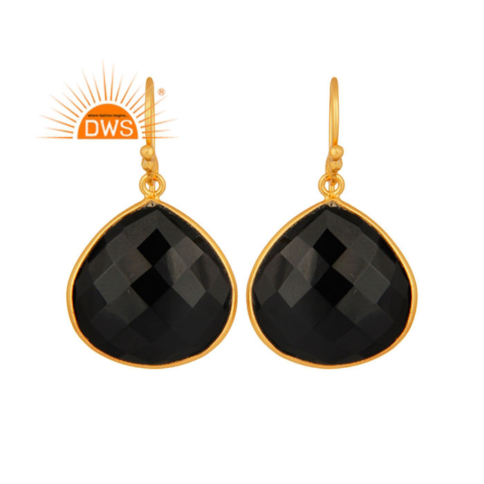 ต่างหูพลอยโอนิกซ์สีดำรูปลูกแพร์ต่างหูชุบทองอินเดียต่างหูห้อย925เงินเครื่องประดับคอลเลกชันวินเทจ