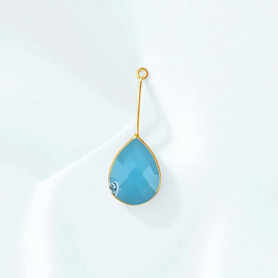 จี้ DIY รูปร่างลูกแพร์พลอยคาลซิโดนีสีฟ้าขนาด8x12มม. จี้ห้อย925เงิน-เครื่องประดับขายส่ง