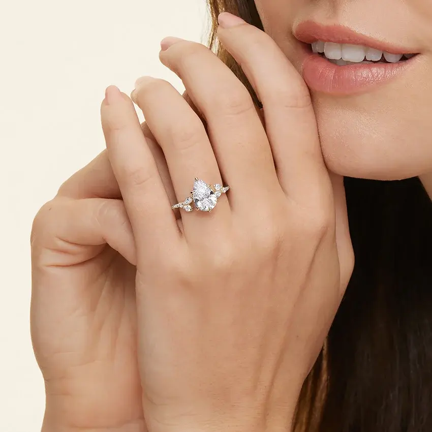 แหวนหมั้นประดับเพชรรูปลูกแพร์ดีไซน์หรูหราสำหรับทุกโอกาส