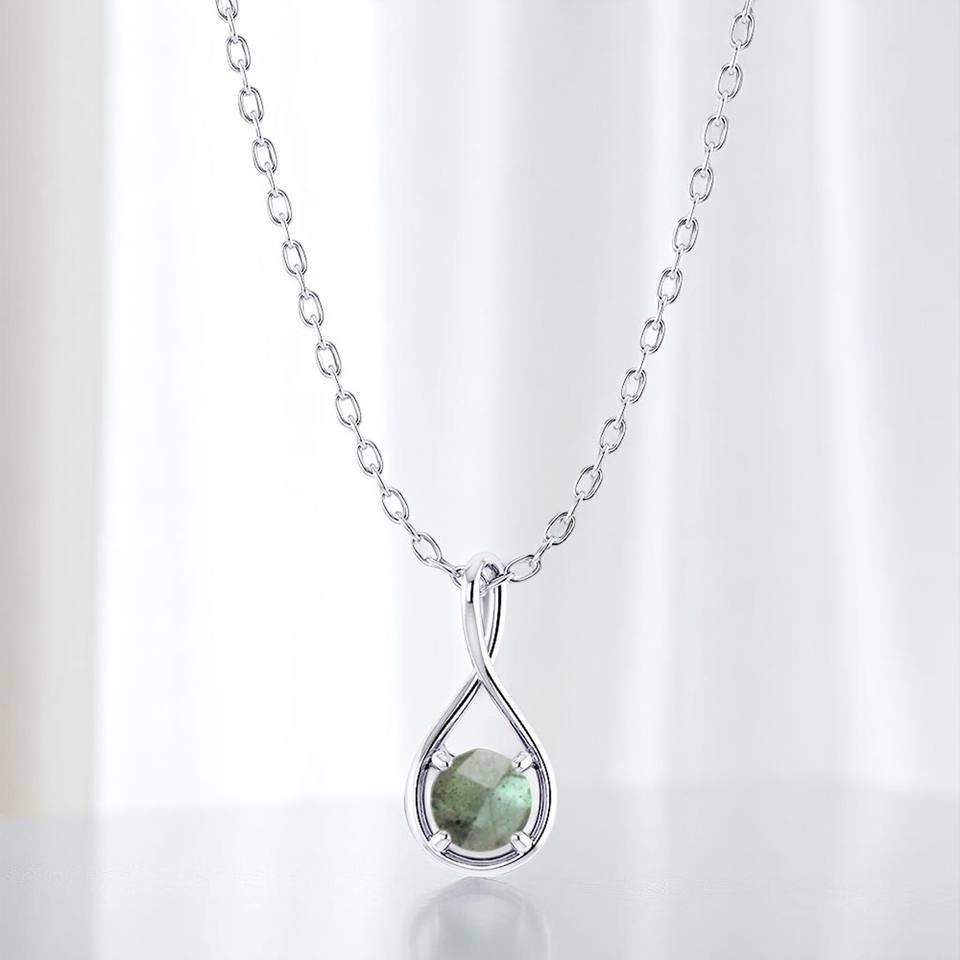 สร้อยคอจี้อัญมณีลาบราดอไรต์ทรงลูกแพร์พร้อมโซ่เงินแท้ขนาด18นิ้วเครื่องประดับแฟชั่นขายส่ง