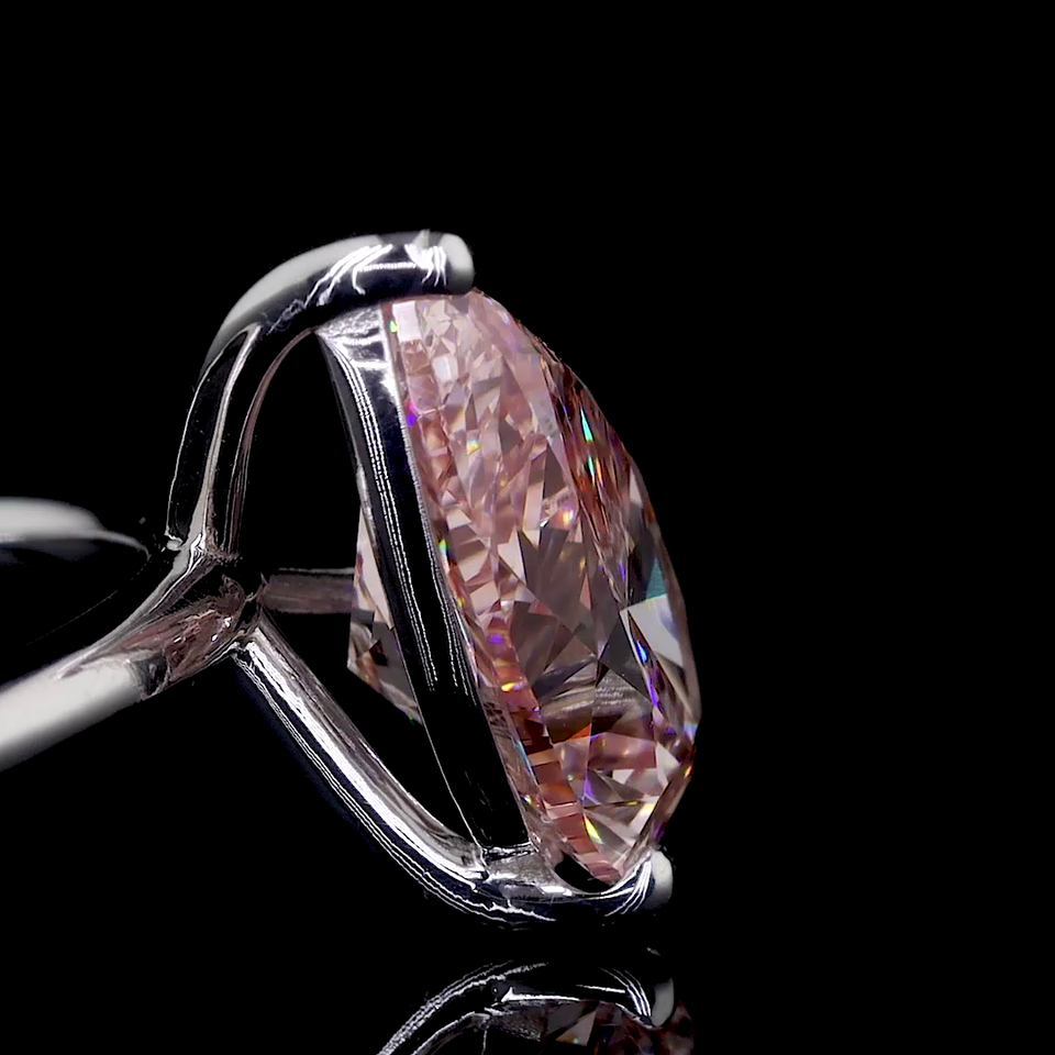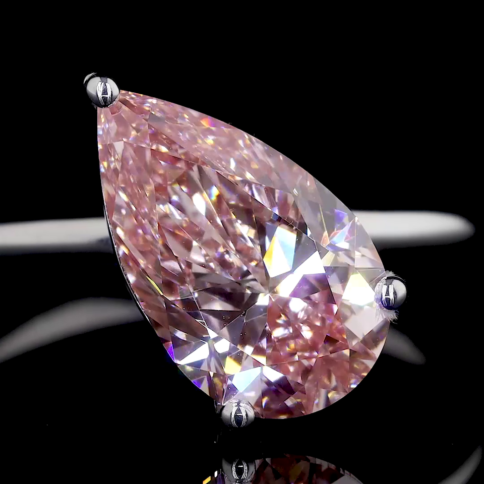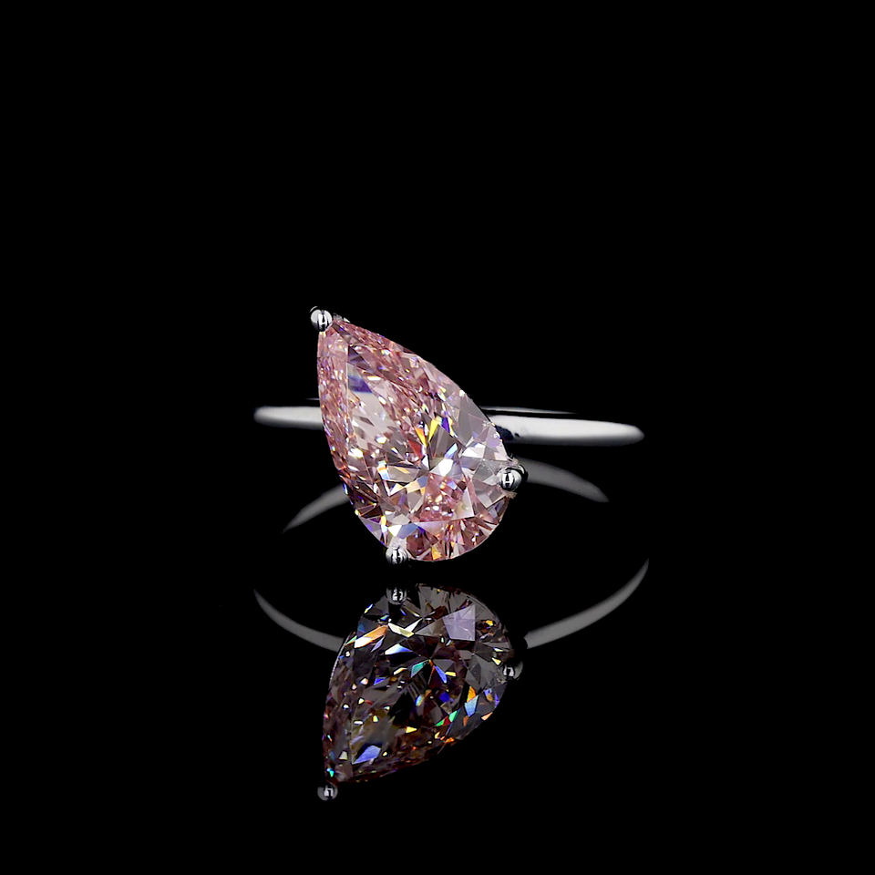 แหวนเพชรทรงลูกแพร์สีชมพูแฟนซี เพชรเลี้ยงในห้องปฏิบัติการ ทอง 14K 18K
