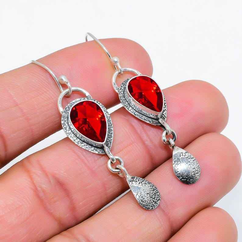 ต่างหูพลอยโกเมนทรงลูกแพร์ เงินแท้ 925 สไตล์วินเทจ งานแฮนด์เมด ของขวัญสำหรับผู้หญิง