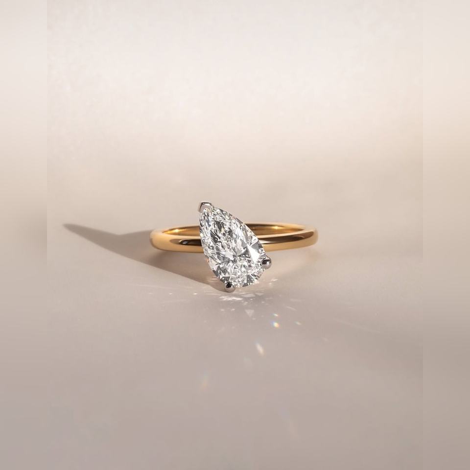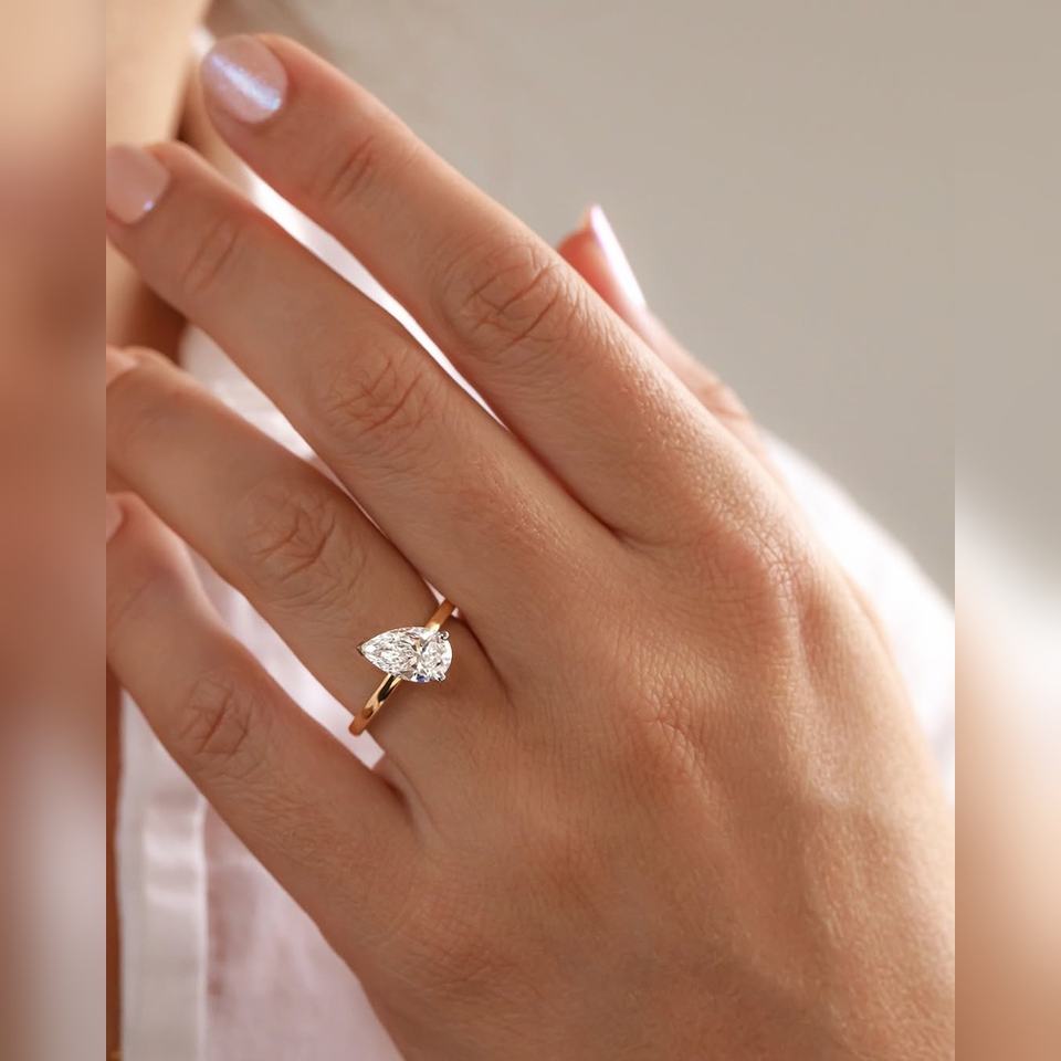 แหวนเพชรทรงลูกแพร์ ตัวเรือนทอง 14K ของขวัญวันครบรอบ/ขอแต่งงาน ผู้จำหน่ายเครื่องประดับขายส่ง