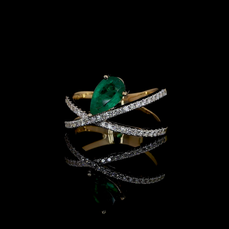 แหวนมรกตสีเขียวทรงลูกแพร์ประดับเพชรทรงกลมที่เพาะเลี้ยงในห้องปฏิบัติการ | แหวนลายคริสครอสสำหรับชุดชาติพันธุ์ ศาสนา และชุดทำงาน