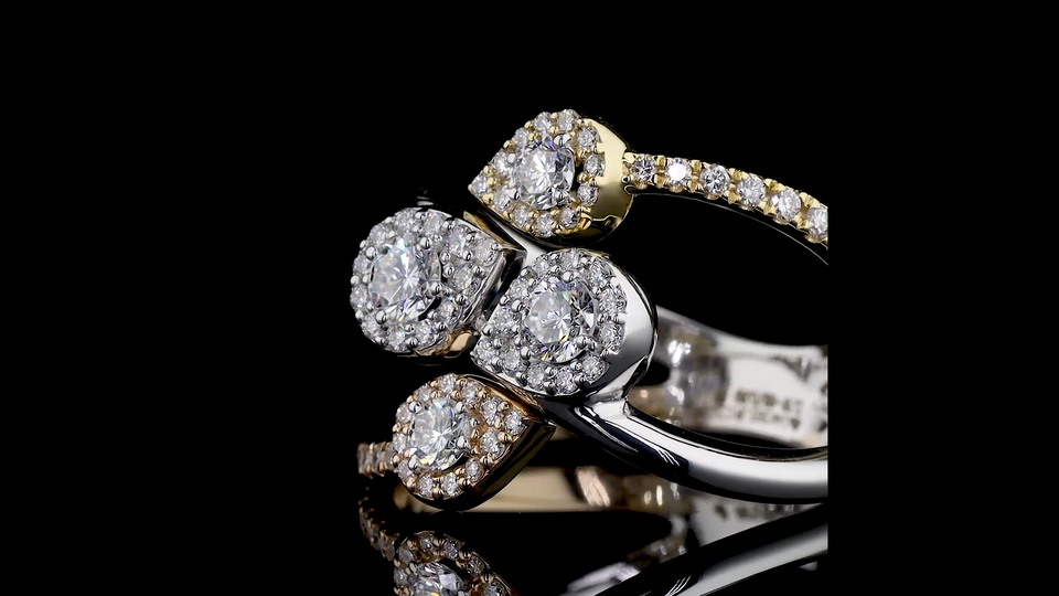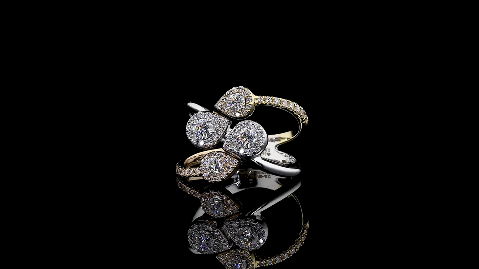 แหวนเพชรทรงลูกแพร์เพาะเลี้ยงในห้องปฏิบัติการ | แหวนทองสามสีในโทนสีโรส, เหลือง และขาว | เครื่องประดับอันหรูหราสำหรับงานเลี้ยงและสวมใส่ในชีวิตประจำวัน
