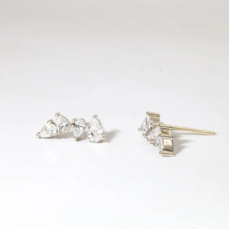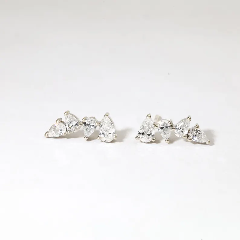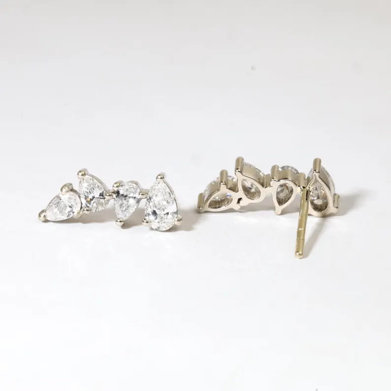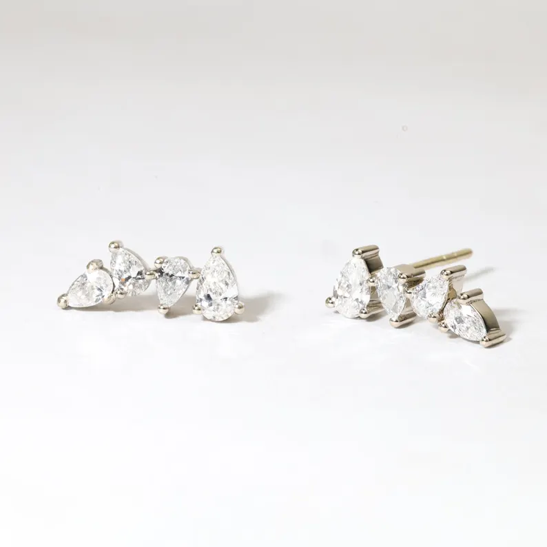 ต่างหูเพชรทรงหยดน้ำรูปทรงลูกแพร์ ทองคำขาว ดีไซน์แบบคลัสเตอร์