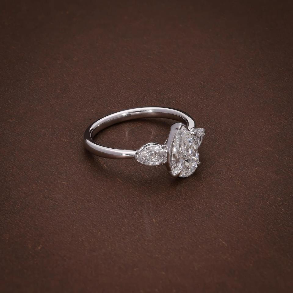 แหวนหมั้นเพชรทรงลูกแพร์เพาะเลี้ยงในห้องปฏิบัติการ ระดับความสะอาด F VVS ชุบทอง 18K น้ำหนัก 1.15 กะรัต เหมาะสำหรับเป็นของขวัญวันครบรอบแต่งงาน ทันสมัย