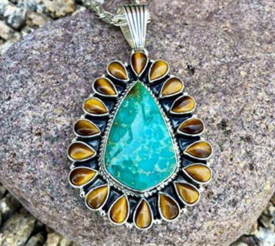 Keyword:Tiger Eye & Turquoise Gemstone Pendant Silver Statement Jewelry