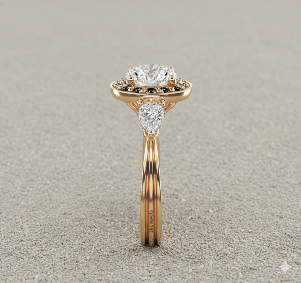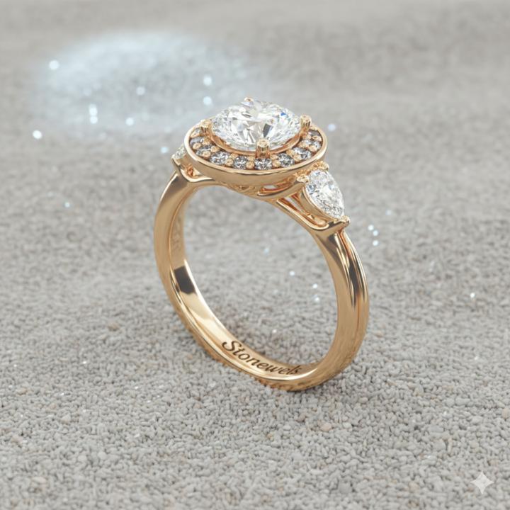 หมายเลขรุ่น:Pear Shape Side Stone Diamond Halo Ring