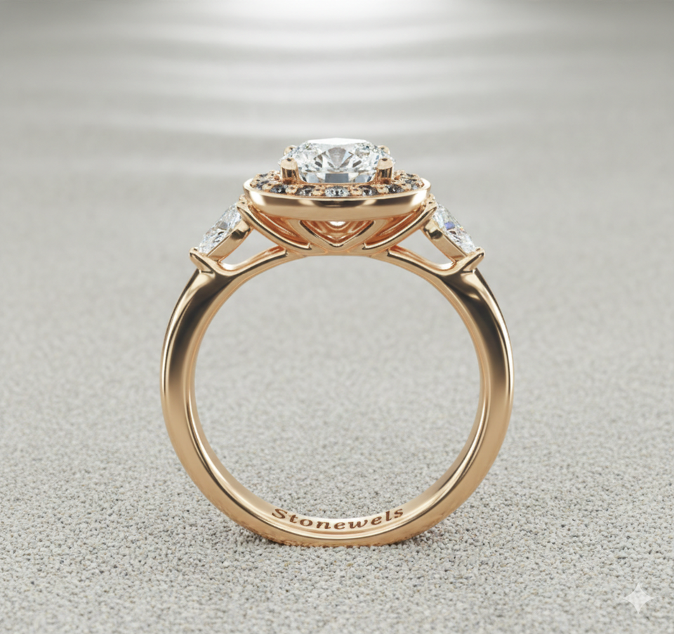 แหวนเพชรทรงลูกแพร์ ประดับเพชรข้างแบบเฮโล