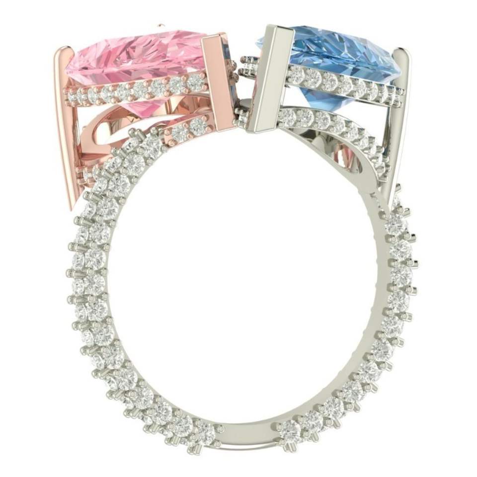 รูปทรงลูกแพร์ Toi et Moi ขนาดที่กําหนดเอง Lab ปลูกแหวนเพชรแฟนซีสีชมพูและสีฟ้าในทอง 14k โดยตรงจากผู้ผลิต