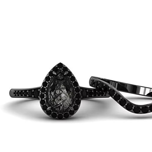 รูปลูกแพร์สีดํา Moissanite เงินสเตอร์ลิงแหวนหมั้นชุดแหวนแต่งงานผู้หญิงโบราณแหวนสัญญาและเครื่องประดับที่กําหนดเอง