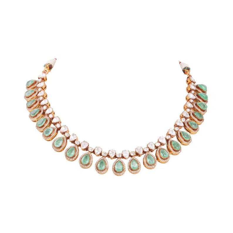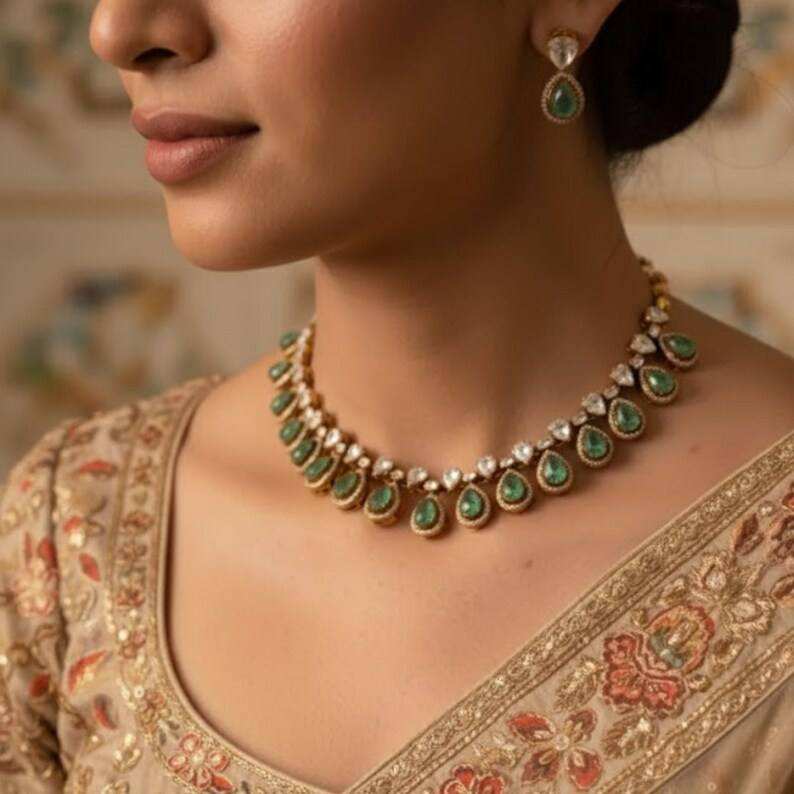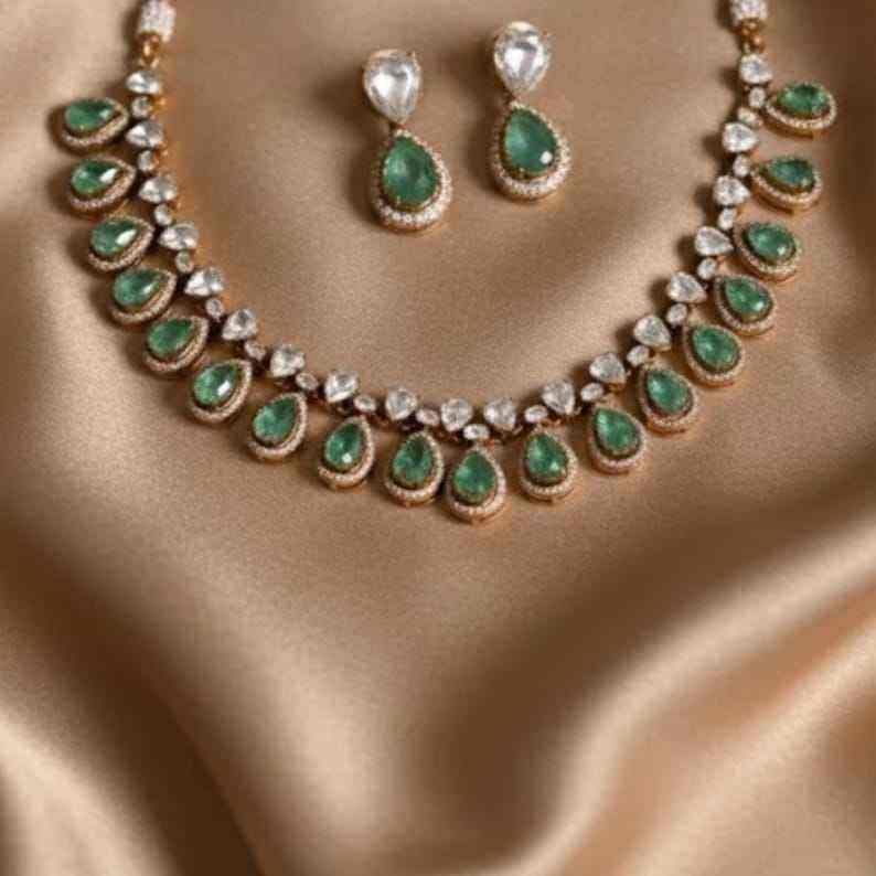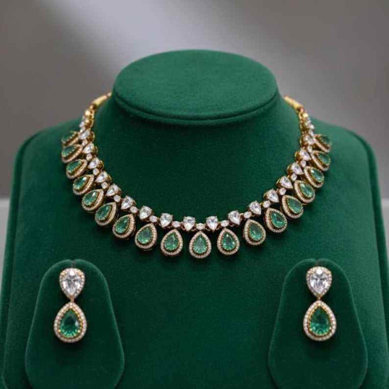 ชุดสร้อยคอและต่างหูรูปทรงลูกแพร์ประดับพลอยสีเขียวสวยงามสำหรับผู้หญิง ทำจากเงินแท้ Gajaah 925