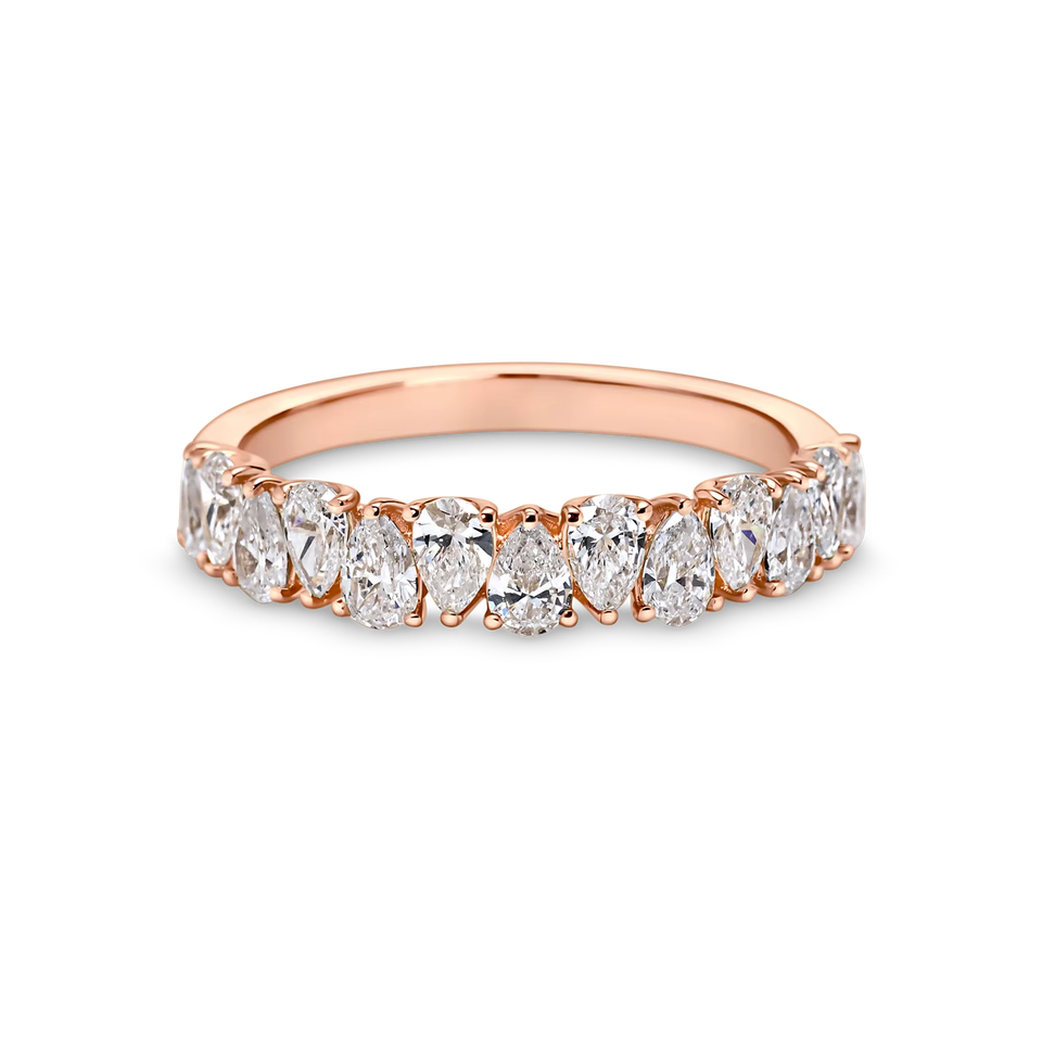 แหวนแต่งงานทรงลูกแพร์แบบครึ่งวงประดับเพชรเลี้ยงในห้องปฏิบัติการ ทำจากทองคำ 18K สีเหลือง ขาว ชมพู และแพลตตินัม
