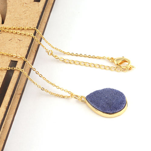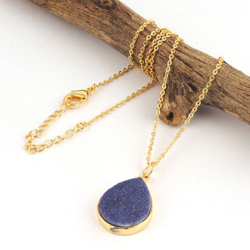 สร้อยคอจี้ดรูซี่รูปลูกแพร์คริสตัลสีฟ้าน้ำตาลอาเกตจี้ดรูซี่ทองเหลืองชุบทองสายเคเบิลสร้อยคอเส้นใหญ่