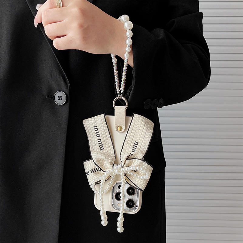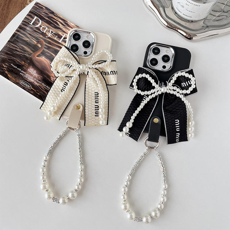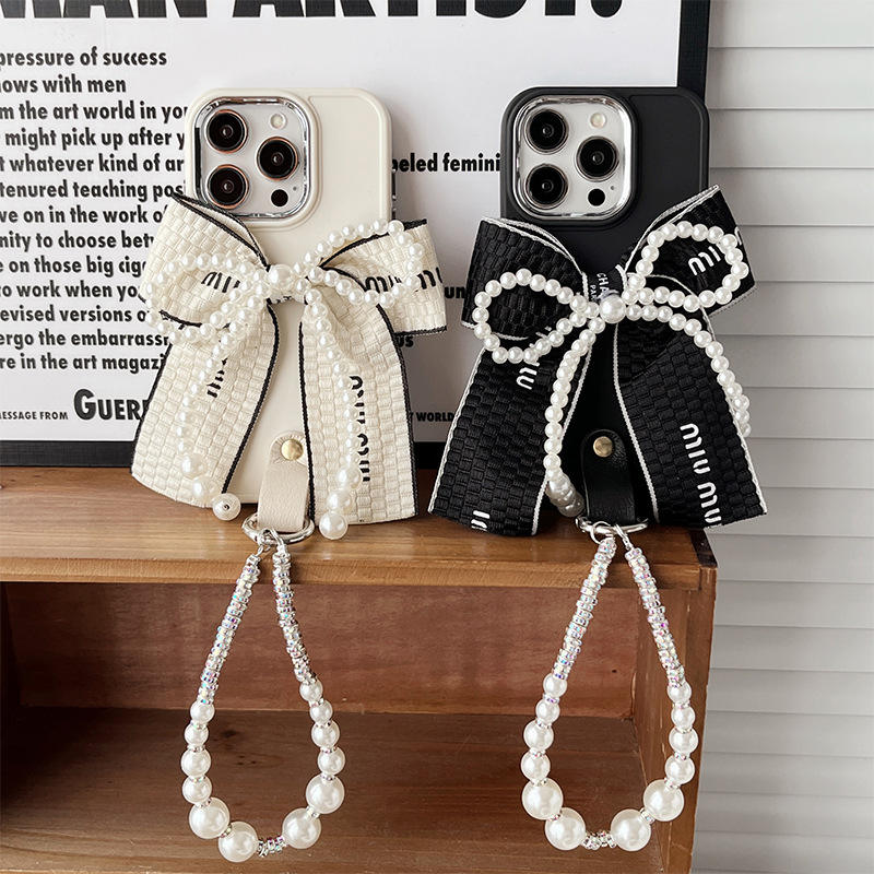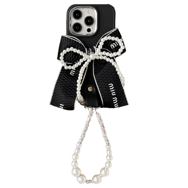 เคสโทรศัพท์ประดับโบว์มุกสำหรับ iPhone 16 15 14 13 12 11 PRO MAX เคสโทรศัพท์มือถือสุดหรูสำหรับผู้หญิงพร้อมสายรัดข้อมือ