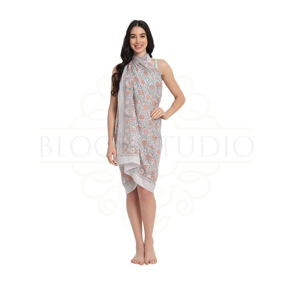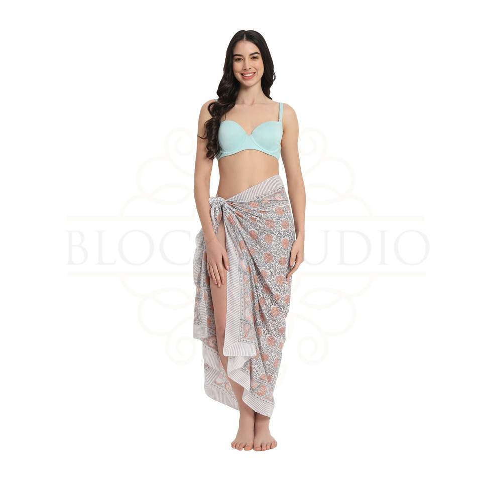 ผ้าซิ่นพิมพ์ลายมุกปะการังและสีเทาขี้เถ้าสำหรับผู้หญิง ผ้าคลุมบิกินี่น้ำหนักเบา เหมาะสำหรับใส่ไปชายหาดและรีสอร์ทในฤดูร้อน
