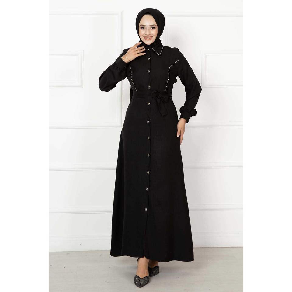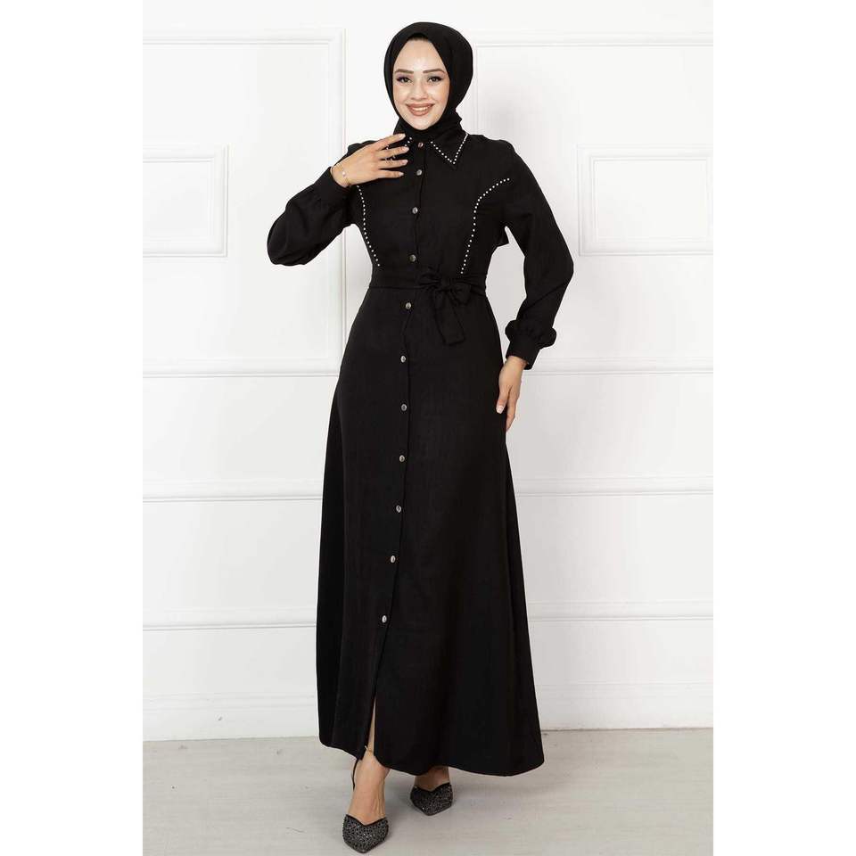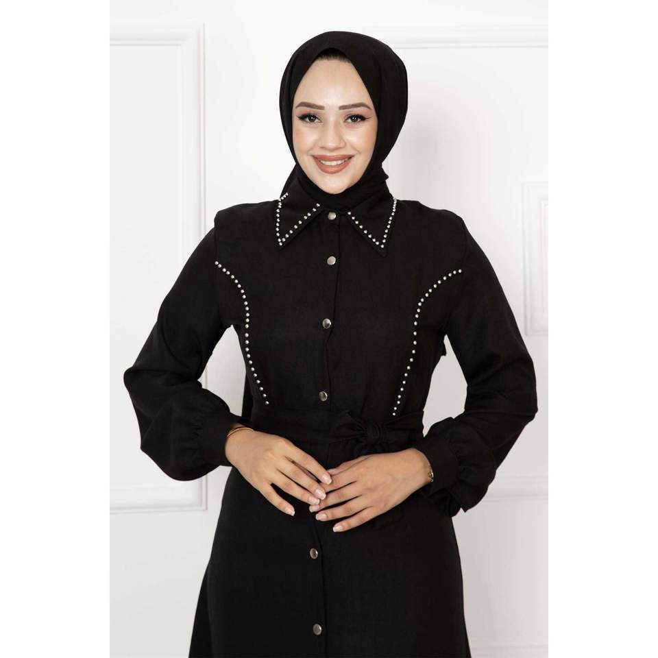 ชุดเดรสสีดำมีปกเสื้อประดับมุก