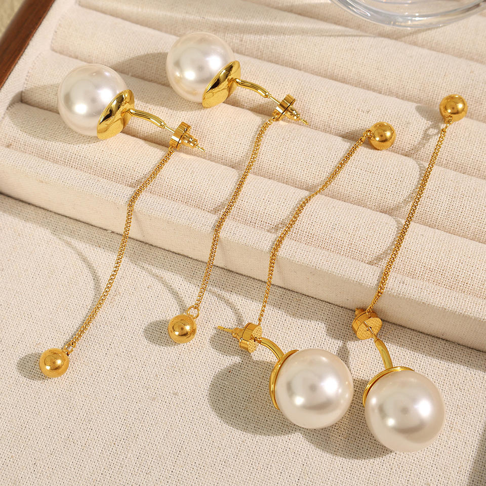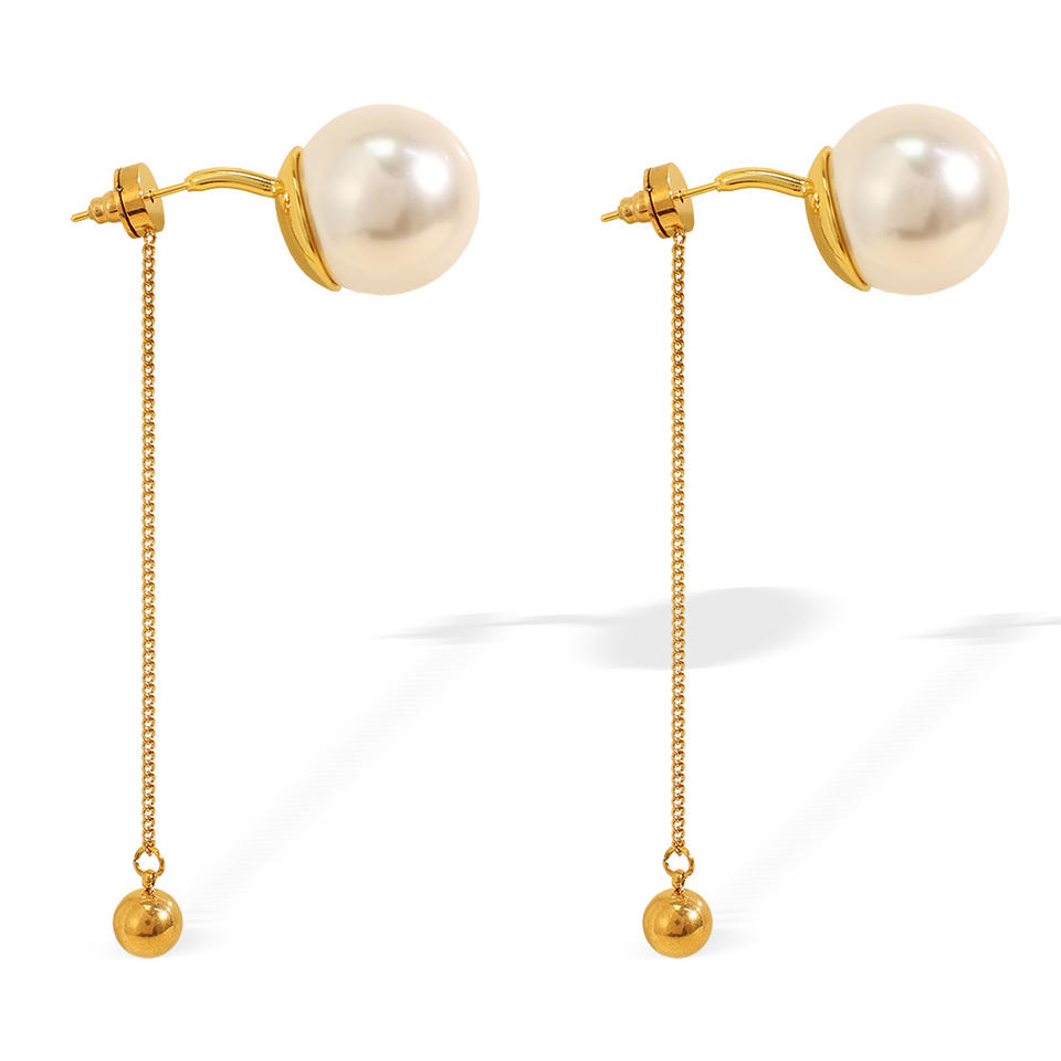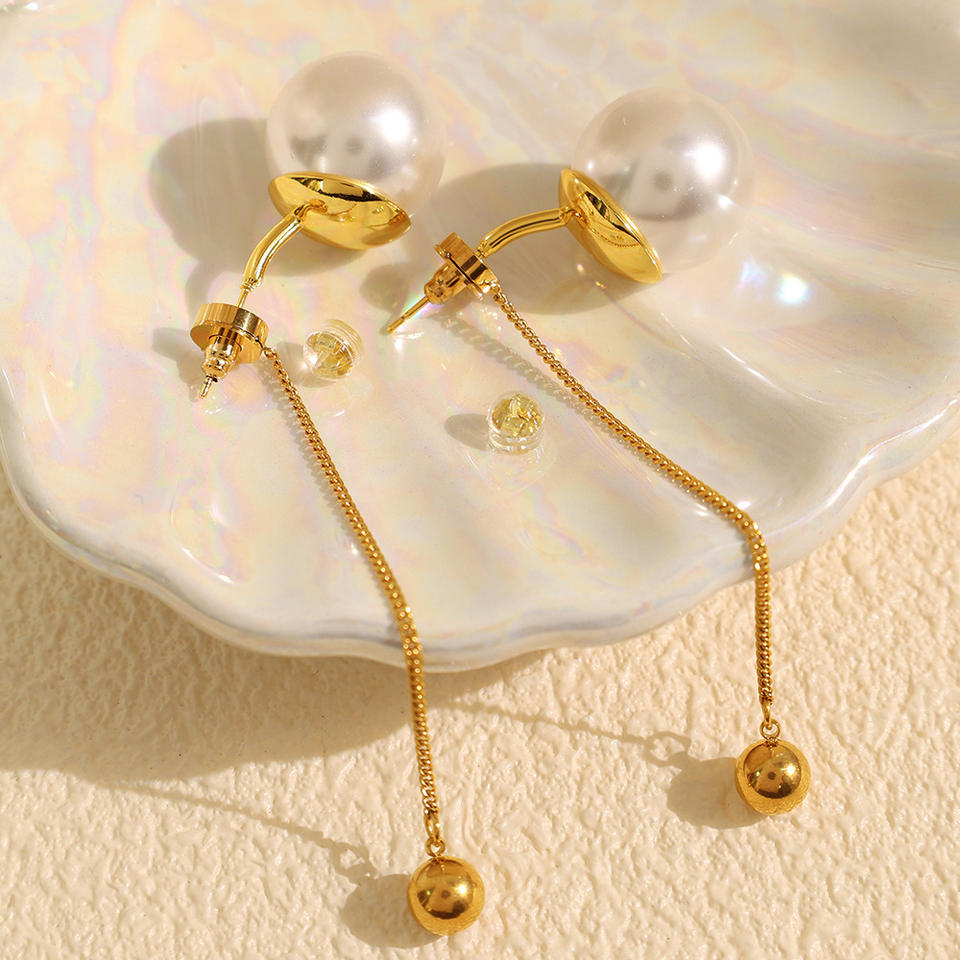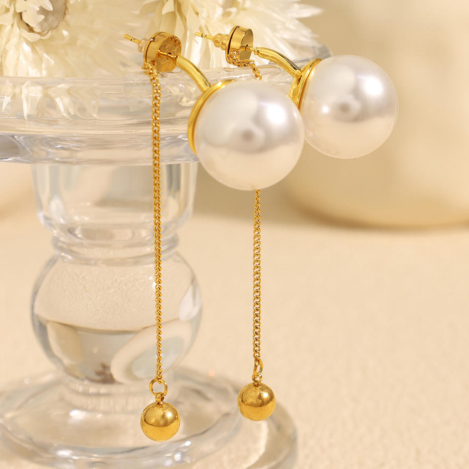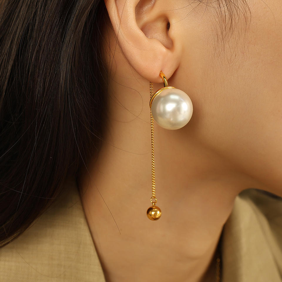 ต่างหูมุกทรงหยดน้ำ จี้ลูกบอลโซ่ทอง เครื่องประดับมุกสีขาวสำหรับผู้หญิง สวมใส่ได้ทุกวัน