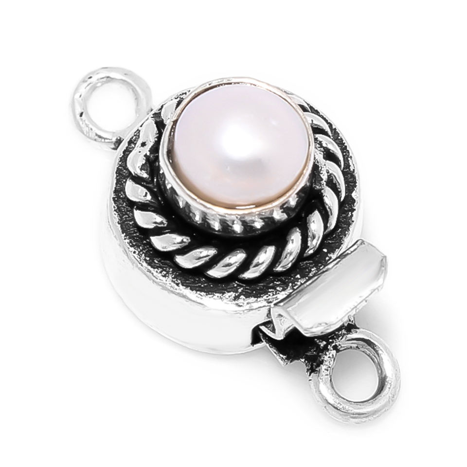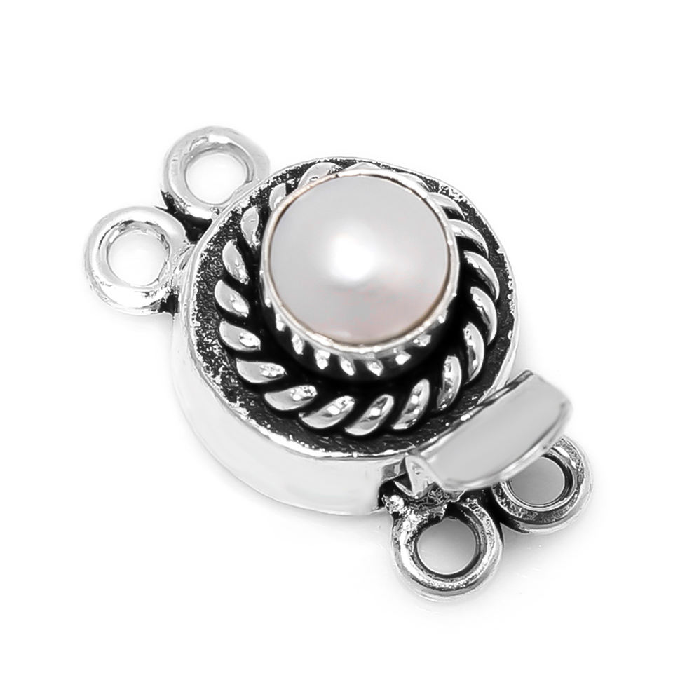 ตะขอกล่องทรงกลม3เส้นและ2เกลียว1ไข่มุกเครื่องประดับ21X12MM ชุบเงินสตาร์ลิ่งโบราณทำเข็มกลัด B622